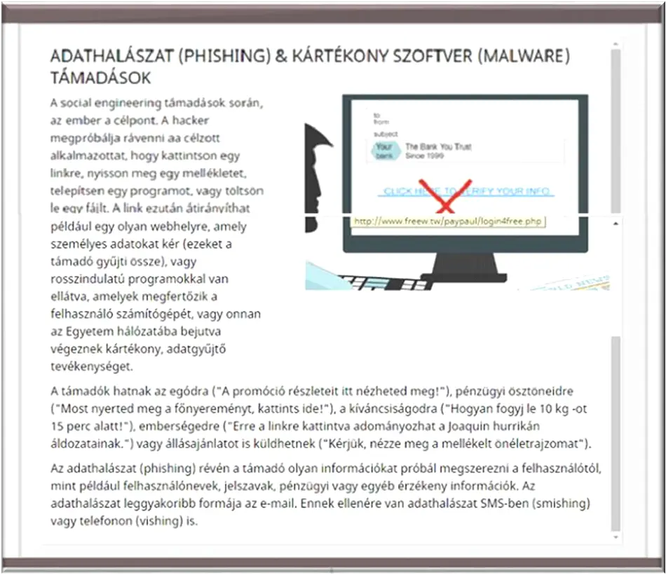 A felhasználókat rosszindulatú weboldalra irányítják át, ahol adatai megszerzésére irányuló cselekvésre ösztönzik.