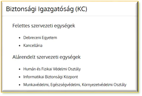 A Debreceni Egyetem informatikai-, adat-, és információbiztonsági feladatainak ellátására, 2019. évben a Kancellária alatt létrehozta az Informatikai Biztonsági Központját, a biztonság jogi követelmény elvárásoknak való megfelelés Egyetemi feladatainak tervezése, teljesítése, felügyelete, követése valamint e tevékenységekkel összefüggő szakhatósági ellenőrzések koordinálása, részükre jelentés, bevallás készítése céllal.
